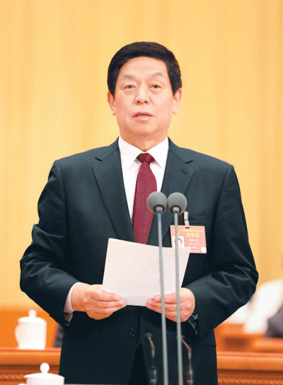 3月5日,第十三屆全國人民代表大會第二次會議在北京人民大會堂開幕。栗戰書主持會議。 |