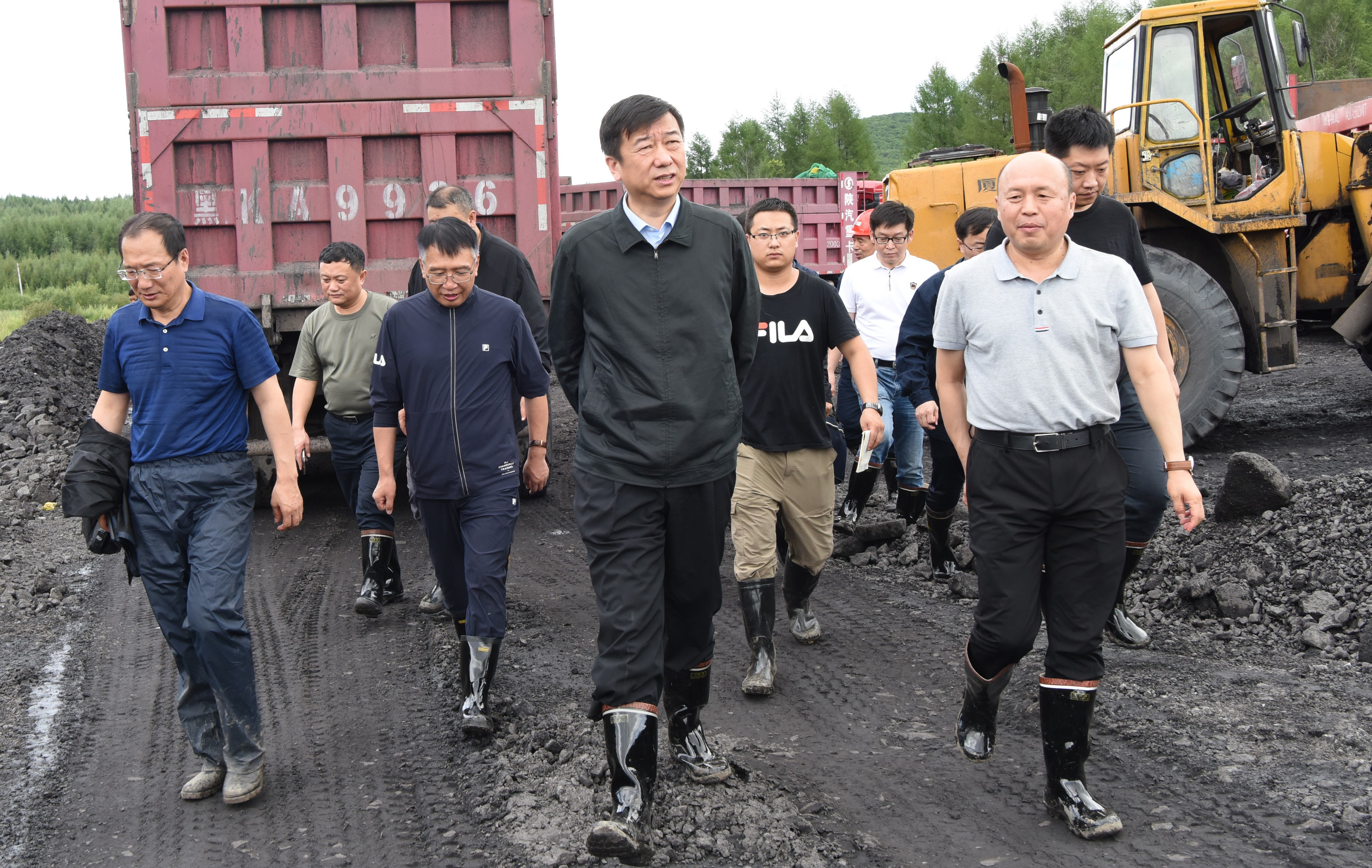 七臺河礦業公司黨委書記、董事長張長山,總經理劉金奇,集團公司相關部門有關人員參加防汛巡查。(張國偉)