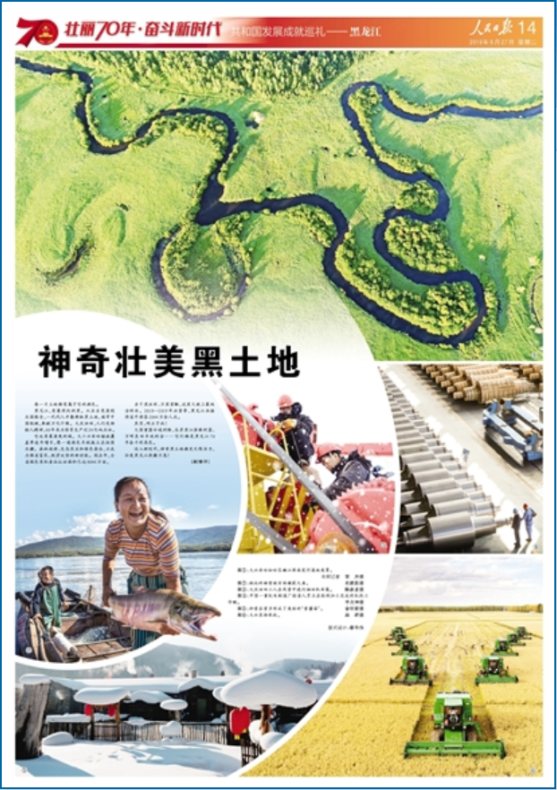 大國重器冷峻的銀、烏蘇里江澄澈的藍、萬頃良田豐收的金……它們都是黑龍江70年奮斗的底色。