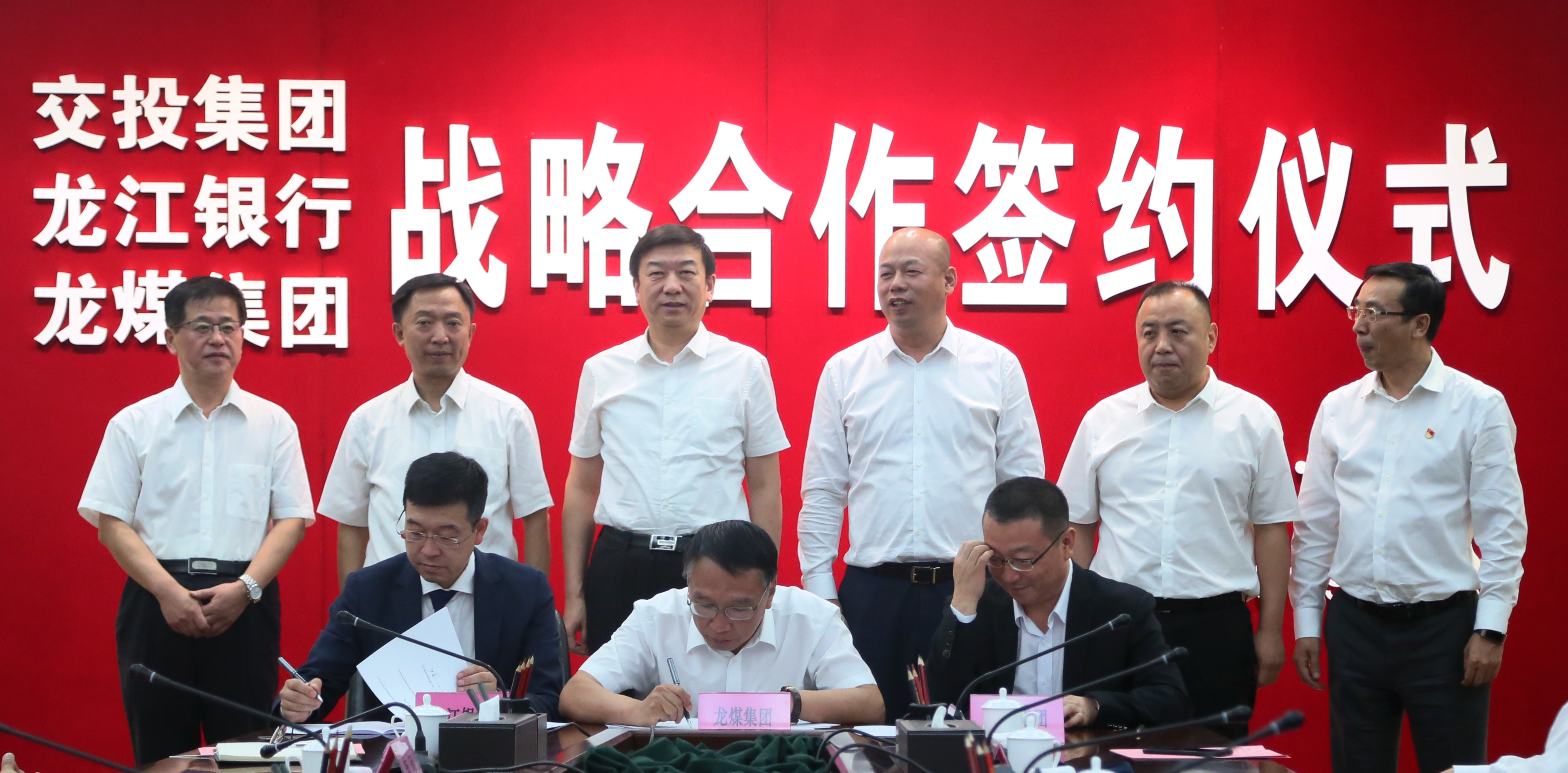 梁德代表龍煤控股集團、孫雪飛代表省交通投資集團、李崧代表龍江銀行簽約。