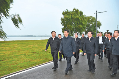 9月18日上午,中共中央總書記、國家主席、中央軍委主席習近平在鄭州主持召開黃河流域生態保護和高質量發展座談會并發表重要講話。這是座談會前,習近平于17日下午在鄭州黃河國家地質公園,沿黃河岸邊步行察看周邊環境,了解沿黃地區生態保護、水資源利用、堤防建設和防洪形勢等情況。新華社記者 謝環馳攝