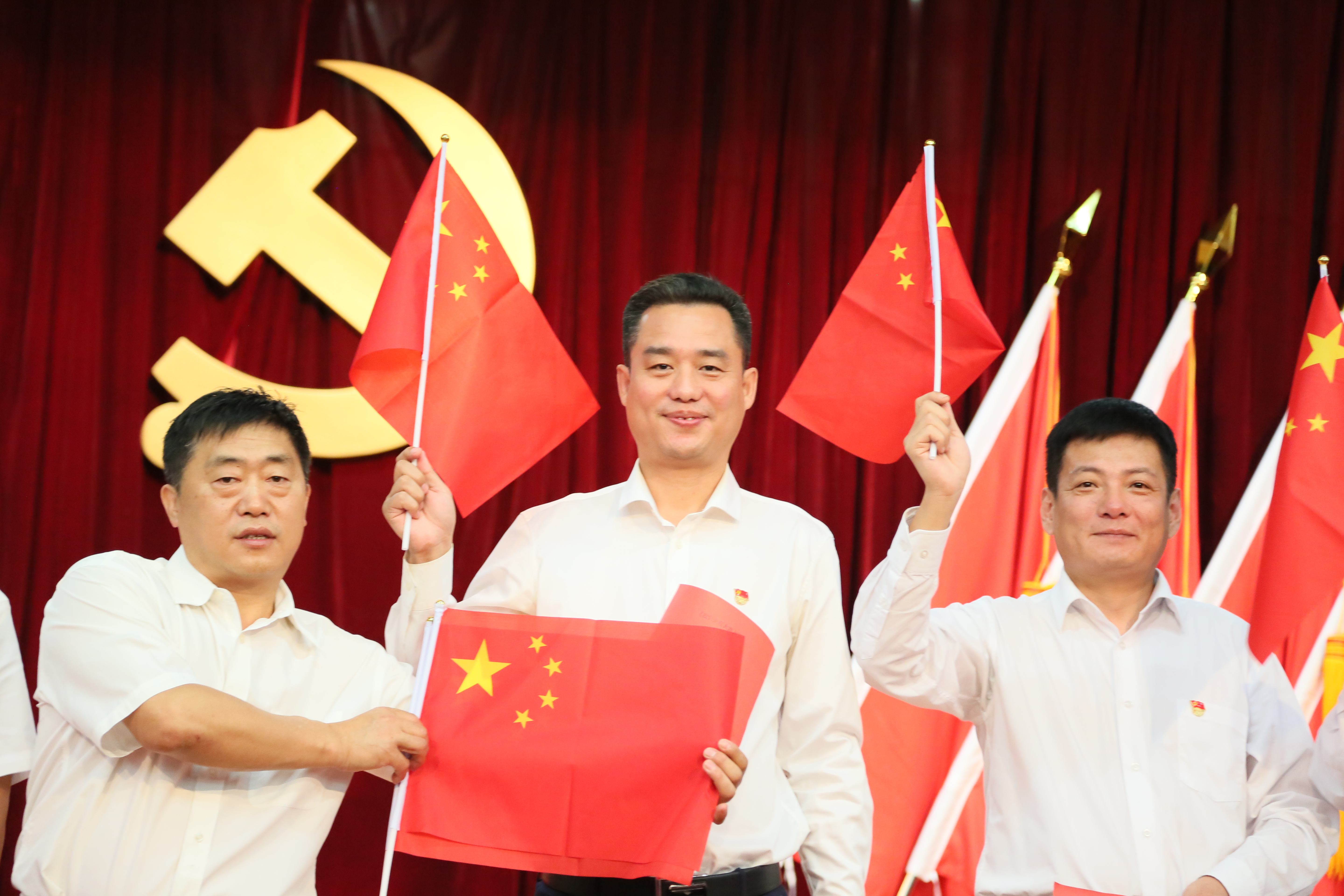 永遠不忘初心使命!——我和國旗、黨徽合個影。