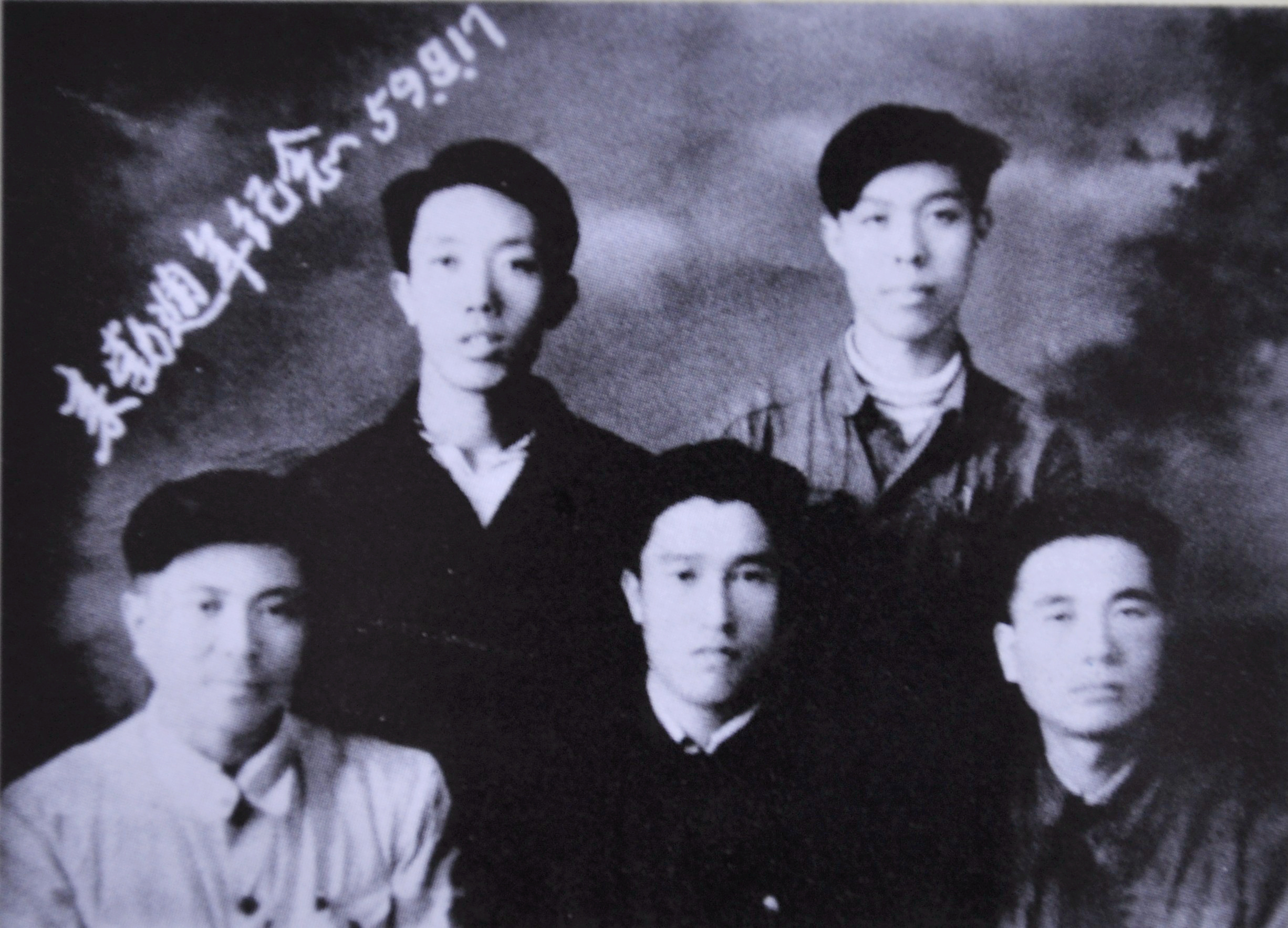 1958年9月23日,第一批來七臺河礦區的五位建設者,前中是籌備處黨委副書記張玉新,前右是工程師楊安華,前左是科長王維圃,后左是秘書王恩才,后右是技術員張振清