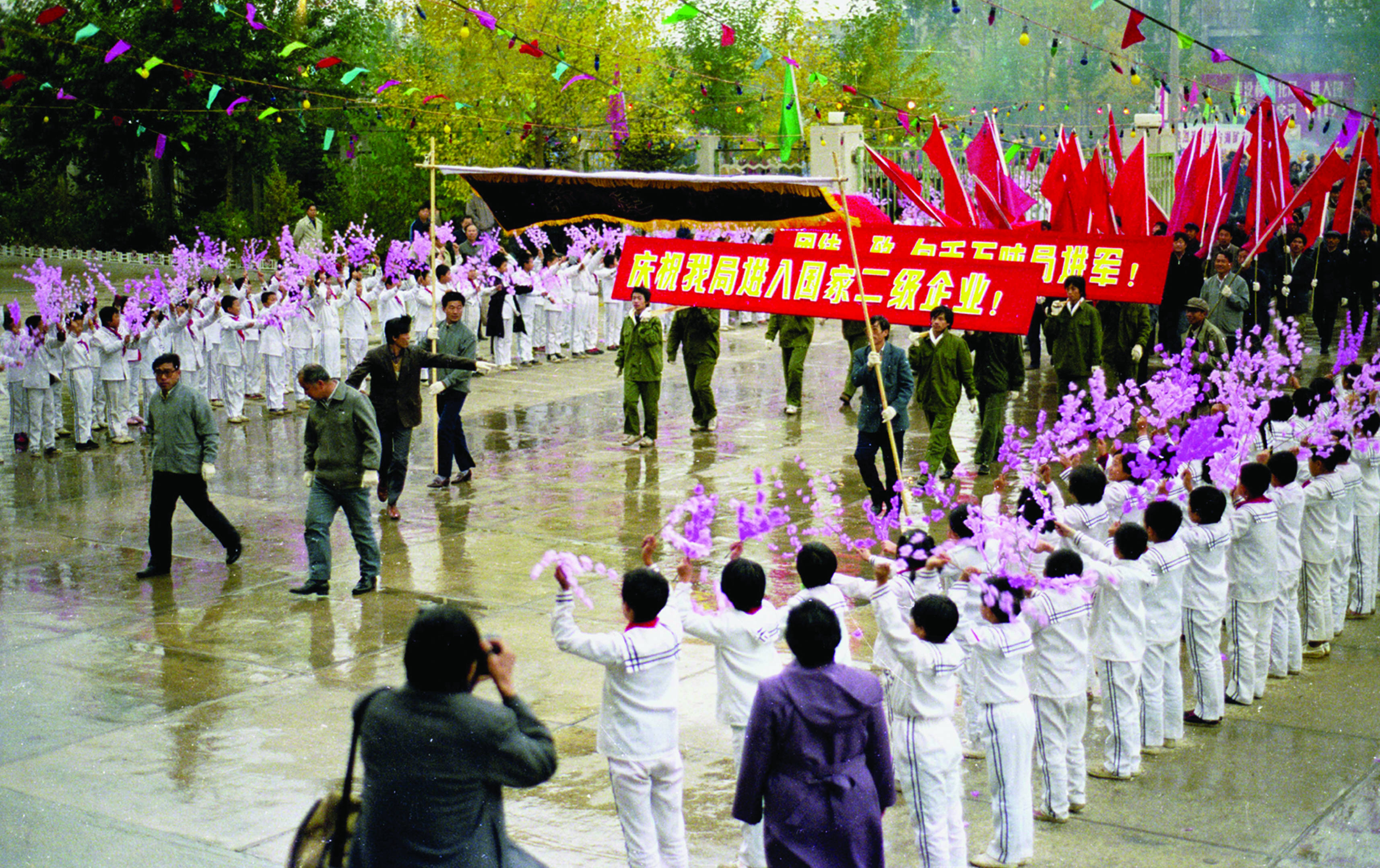 1986年11月15日,七臺河礦務局富強煤礦建成生產剪彩儀式