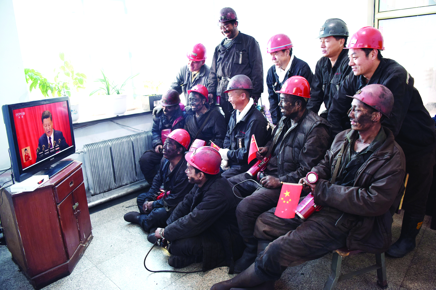 七臺河礦業公司新建煤礦一線礦工觀看黨的十九大開幕盛況