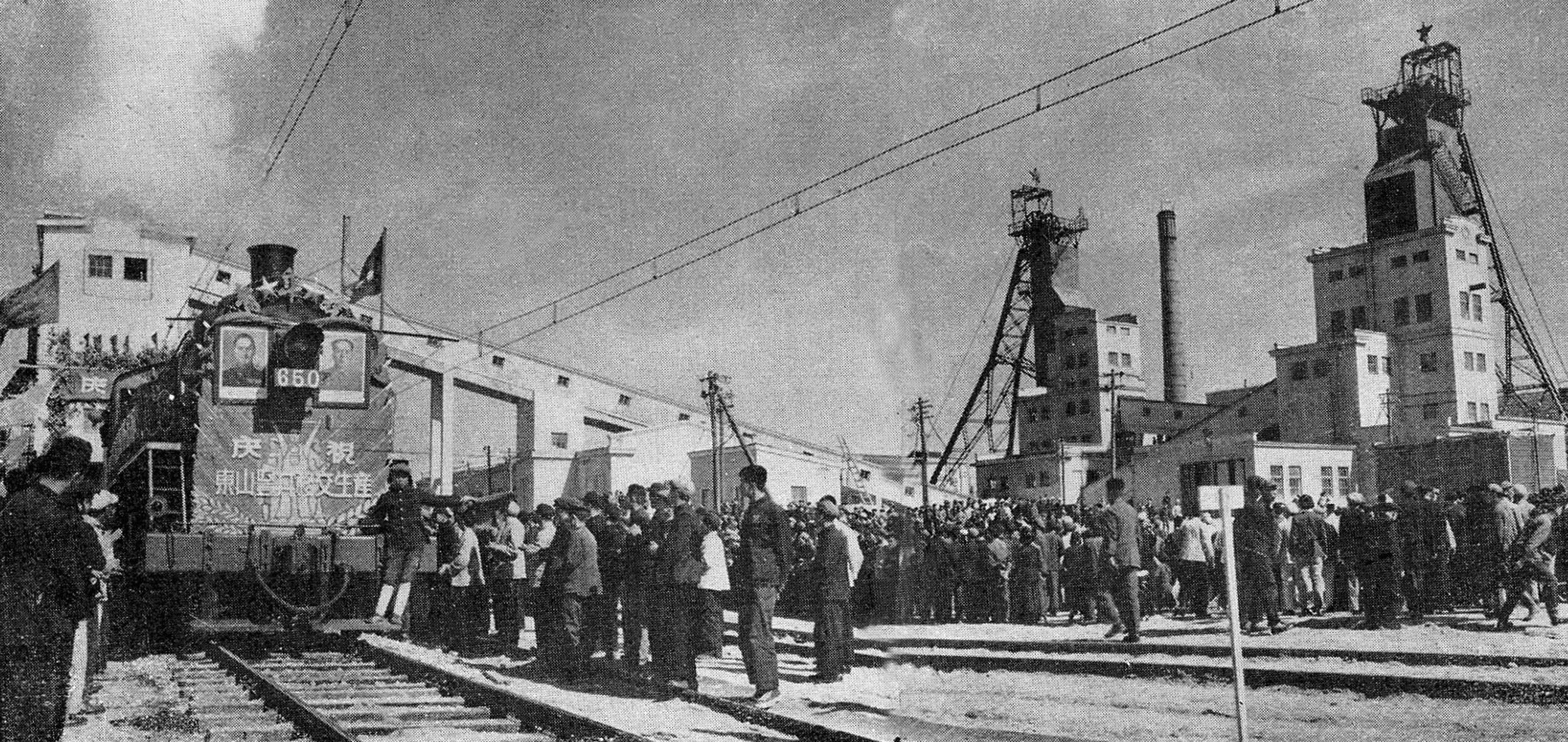1950年9月20日,由前蘇聯(lián)煤炭工業(yè)部礦井設(shè)計(jì)總局主持,列寧格勒設(shè)計(jì)院設(shè)計(jì)的鶴崗東山豎井正式破土動(dòng)工,歷時(shí)5年,礦井正式建成并移交投產(chǎn)。由于東山豎井是新中國(guó)成立以后建成的第一個(gè)豎井,因此被國(guó)家煤炭部命名為“新一煤礦”。圖為投產(chǎn)后發(fā)出第一車煤。