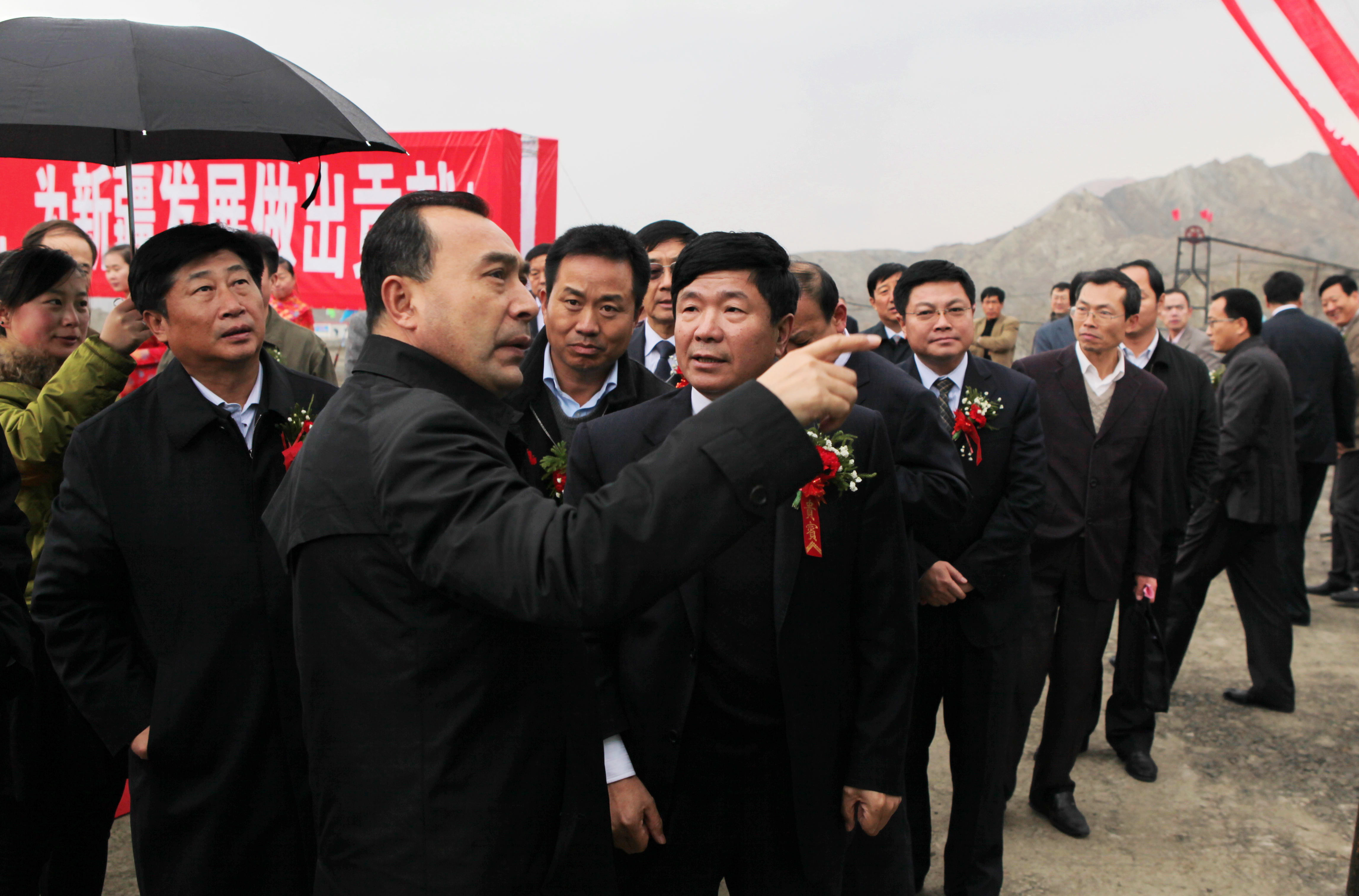 時任新疆自治區政府副主席庫熱西·買合蘇提(左二)對龍煤進疆創業寄予殷切期望。