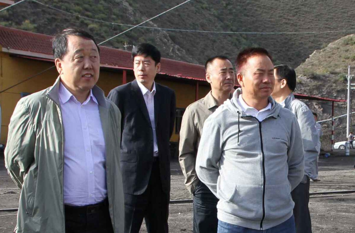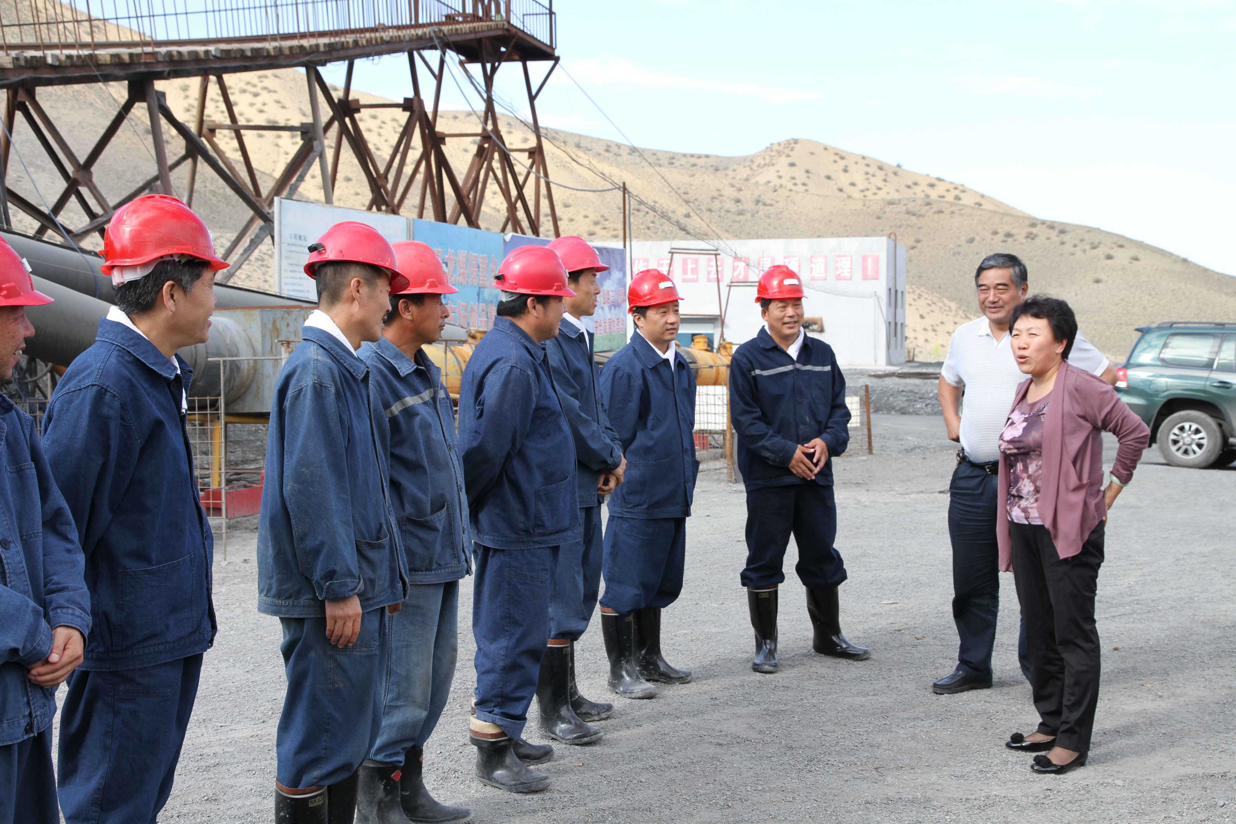 時任黑龍江省國資委副主任高欣(右一)視察新疆公司礦井建設情況。