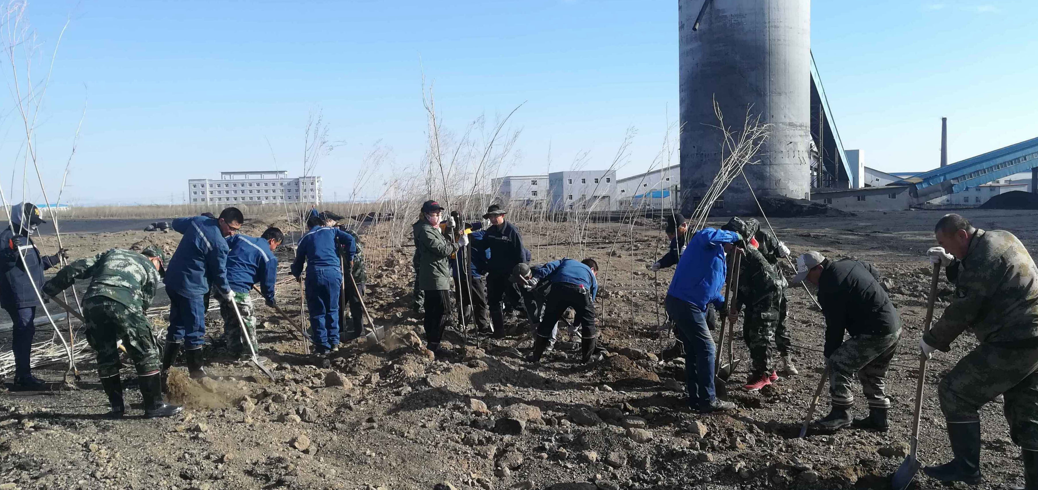 圖為黑眼泉煤礦干部職工利用工休工余時間在荒漠中植樹造林。