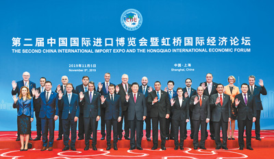 11月5日,第二屆中國(guó)國(guó)際進(jìn)口博覽會(huì)在上海國(guó)家會(huì)展中心開(kāi)幕。國(guó)家主席習(xí)近平出席開(kāi)幕式并發(fā)表題為《開(kāi)放合作 命運(yùn)與共》的主旨演講。這是開(kāi)幕式前,習(xí)近平同外方領(lǐng)導(dǎo)人集體合影。新華社記者 謝環(huán)馳攝