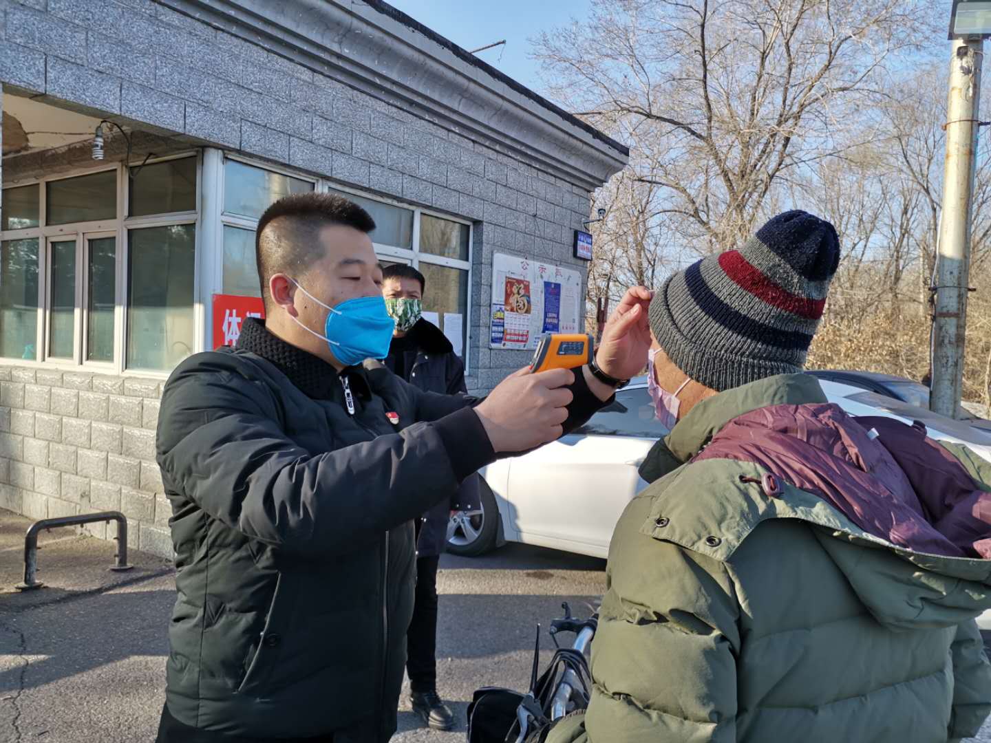 王明星主要負責(zé)辦公樓大門和礦大門的把守工作,按照礦疫情防控應(yīng)急處置領(lǐng)導(dǎo)小組關(guān)于嚴禁外來人員和車輛進礦,對有特殊原因進礦的本礦職工車輛實行一桿一測,對出勤的職工實行一人一測的安排部署。王明星每天清晨不倒6點,就頭頂晨星,踏著積雪,冒著嚴寒,站在礦大門前,為出勤的職工一一測試體溫,做好登記。前段時間室外溫度最低時接近零下30度,盡管戴了手套,工作一會手指還是會被凍得麻木,為了不耽誤出勤職工時間,保護保衛(wèi)人員不被凍感冒,王明星總以自己當(dāng)過兵、身體好為由,盡可能的在崗位上多堅持一陣,讓別的組員多在屋里呆一會,經(jīng)常在外面一站就是1個多小時。為了保證測溫儀器不在室外低溫下失靈,導(dǎo)致職工體溫測試不準,他在腰間掛上熱水袋,測一次體溫就把測溫儀器放在熱水袋上暖一暖,冷風(fēng)順著他敞開的領(lǐng)口往衣服里鉆,脖子一會就被凍得通紅,可是他依然不肯早進屋暖上一暖。