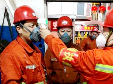 全公司各礦井對復工復產職工全面進行了肺部CT檢查,以確保無感染者或疑似者上崗;在入礦、入樓、入井口處設立檢測點,全員進行體溫檢測;安排專人負責監督,全員全程佩戴口罩;班前會隔座就坐,盡量少開會開短會;入井乘罐、井下乘車和升井洗浴都分批次錯峰組織,盡量減少人員聚集……