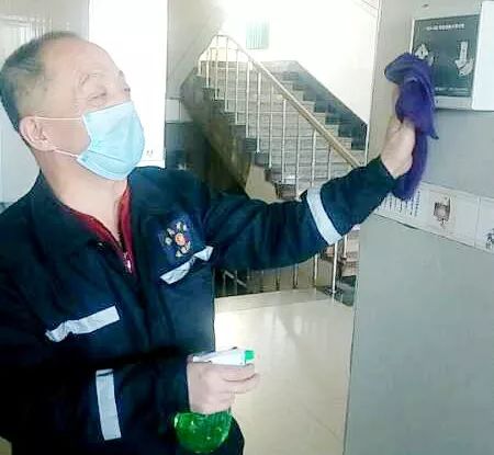五十六歲的袁忠民在煤炭戰(zhàn)線算得上是一名“老兵”,疫情發(fā)生時正值春節(jié)假期,袁忠民同志臨危受命,負(fù)責(zé)峻德煤礦職工浴池的防疫工作。作為一名老黨員,他為自己樹立了“踐行初心,守土有責(zé)”的信念,義無反顧地放棄了春節(jié)假期的個人休息時間,按時返回工作崗位。因為時間緊,任務(wù)重,來不得半點遲緩,他積極落實峻德煤礦防疫領(lǐng)導(dǎo)小組對職工浴池防疫的工作安排,每天堅守在最前線量體溫、做記錄。對職工浴池一至四層共3000多平方米,包括九米五入井長廊進(jìn)行場地滅菌和病毒消殺,因為人手少,只要他自己一人能干的活他就全部拿下來,左右手拎著滿滿的都是84消毒液,不遺漏職工入井工作工作場所的每一處角落,和其他的工友一起,對門把手、樓梯扶手、刷卡機(jī)、吊筐等職工易接觸到的部位從早晨7點到下午4點,每天兩遍進(jìn)行細(xì)致的擦拭,確保萬無一失,防范工作無死角。同時監(jiān)督職工佩戴口罩,遵守室內(nèi)的各項規(guī)章制度。由于消毒酒精易揮發(fā)燃點低,他告訴工友和其他人員,要堅決看住職工室內(nèi)不能吸煙以防引發(fā)火災(zāi)。工作中他一邊忙碌大浴池的工作,還要兼顧其他部位的日常維護(hù)工作,有情況有問題,他都會第一時間到現(xiàn)場去解決。工作之余,他還做起了職工班中飲用水設(shè)備的修理和維護(hù)。