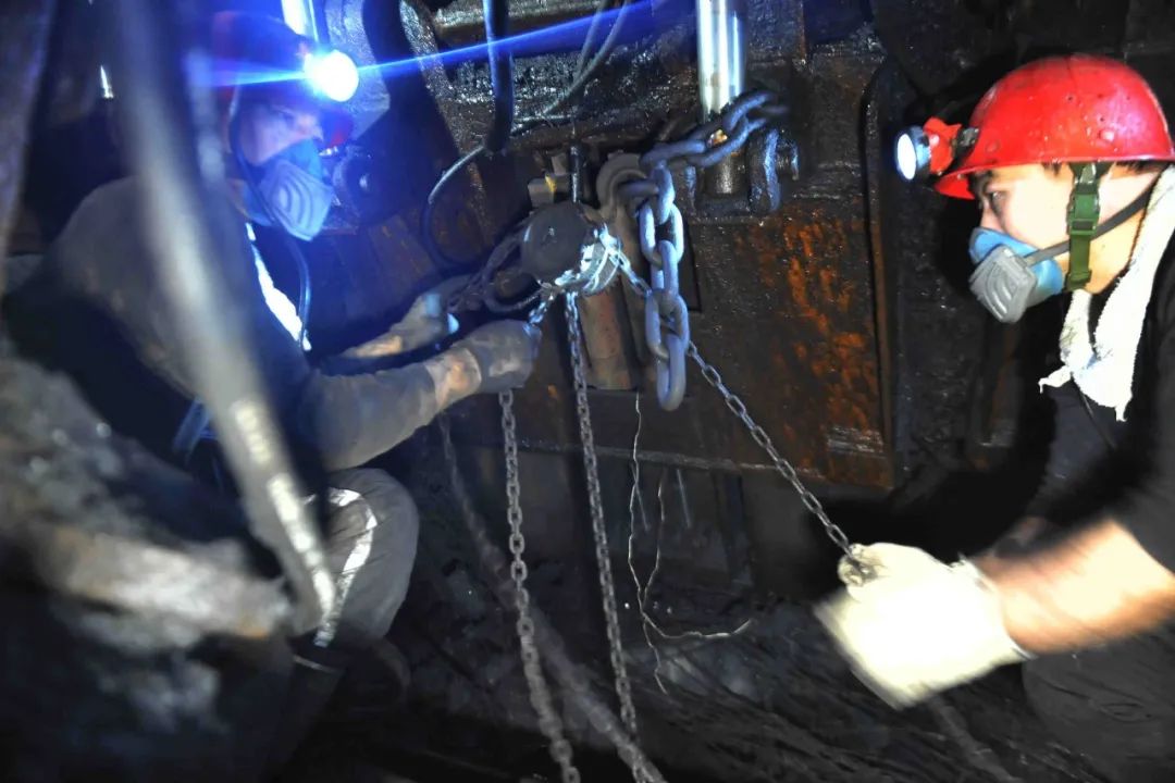 南山煤礦高檔區(qū)礦工師傅們正在對采煤工作面設(shè)備進行維護