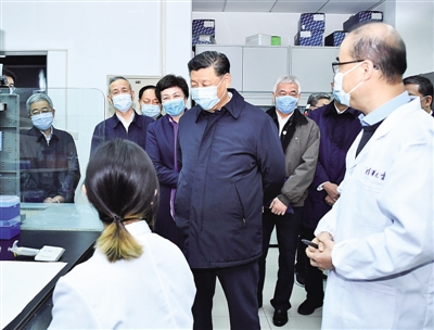 離開軍事醫(yī)學(xué)研究院,習(xí)近平來到清華大學(xué)醫(yī)學(xué)院考察調(diào)研。他先后走進(jìn)全球健康與傳染病研究中心、生物醫(yī)學(xué)檢測技術(shù)及儀器北京實驗室,向?qū)<以敿?xì)了解創(chuàng)新藥物研發(fā)進(jìn)展情況和新型檢測試劑、檢測設(shè)備研發(fā)應(yīng)用等情況,并觀看了正在進(jìn)行的酶聯(lián)免疫吸附試驗。習(xí)近平指出,防控新冠肺炎疫情斗爭有兩條戰(zhàn)線,一條是疫情防控第一線,另一條就是科研和物資生產(chǎn),兩條戰(zhàn)線要相互配合、并肩作戰(zhàn)。習(xí)近平希望他們加強(qiáng)同前方的配合,組織精干力量、急事急辦,加速推進(jìn)新型檢測試劑、抗體藥物、疫苗和診療方案等攻關(guān)。習(xí)近平強(qiáng)調(diào),我國是一個有著14億多人口的大國,防范化解重大疫情和重大突發(fā)公共衛(wèi)生風(fēng)險,始終是我們須臾不可放松的大事。要健全國家重大疫情監(jiān)控網(wǎng)絡(luò),完善法律法規(guī)體系,加大前沿技術(shù)攻關(guān)和尖端人才培養(yǎng)力度,盡快提高我國應(yīng)對重大突發(fā)公共衛(wèi)生事件能力和水平。