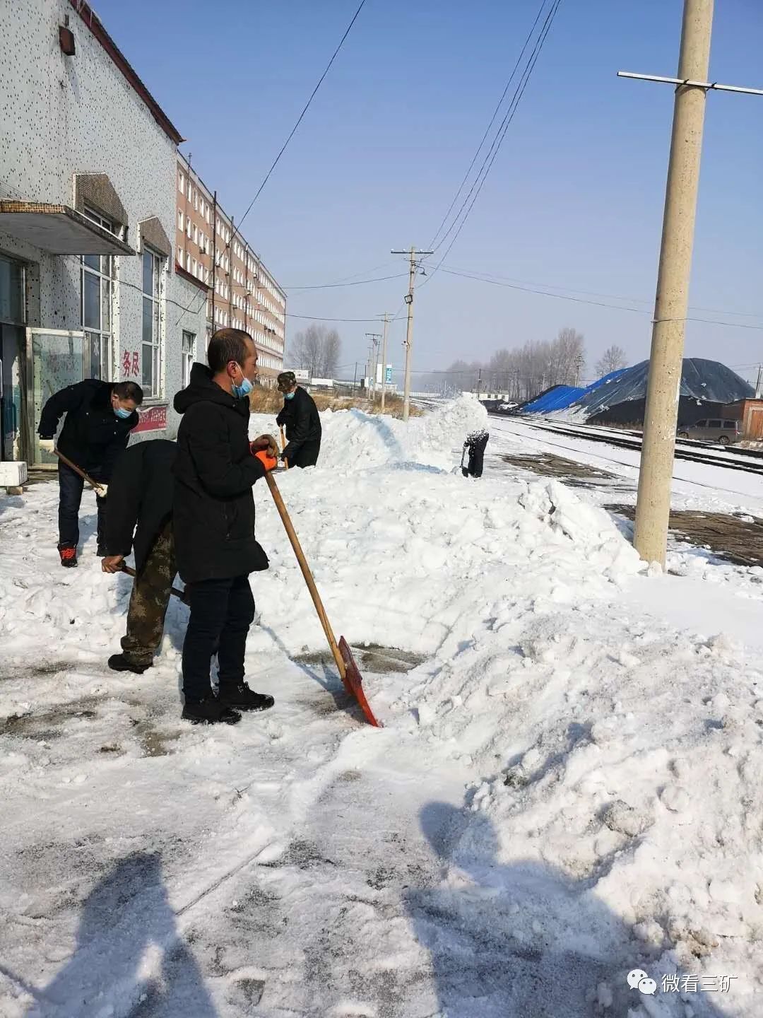 在清冰除雪過程中,大家揮動鐵鍬、掃帚,奮力鏟碎積冰,仔細清除殘雪,在為了不留安全隱患,他們對車站臺階處和人員上下車站臺處的冰雪做到不留任何殘雪浮冰,確保上下班職工的行路安全。