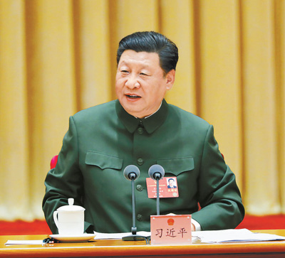 五月二十六日下午,中共中央總書記、國家主席、中央軍委主席習近平出席十三屆全國人大三次會議解放軍和武警部隊代表團全體會議并發表重要講話。 新華社記者 李 剛攝