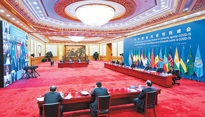 習近平最后強調,我們在中非合作論壇北京峰會上一致決定構建更加緊密的中非命運共同體。今天我們召開團結抗疫特別峰會,就是用實際行動踐行北京峰會承諾,也是為國際抗疫合作貢獻力量。我相信,人類終將戰勝疫情,中非人民也終將過上更加美好的生活。(講話全文見第二版)