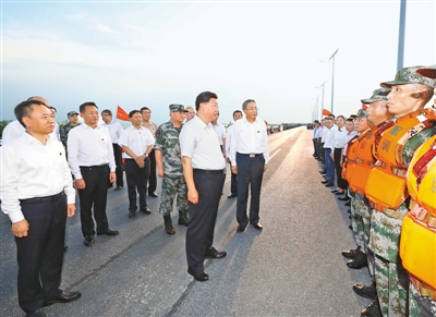 大堤上,習(xí)近平親切看望慰問(wèn)了在防汛抗洪救災(zāi)斗爭(zhēng)中犧牲同志的家屬、防汛抗洪一線人員、先進(jìn)典型代表和參加抗洪搶險(xiǎn)的部隊(duì)官兵,并向全國(guó)奮戰(zhàn)在防汛抗洪救災(zāi)一線的同志們表示誠(chéng)摯的問(wèn)候。他強(qiáng)調(diào),今年入汛以來(lái),南北方江河湖泊接連出現(xiàn)超警戒水位險(xiǎn)情。廣大干部群眾和人民解放軍、武警官兵堅(jiān)決響應(yīng)黨和政府號(hào)召,發(fā)揚(yáng)不怕累苦、不怕疲勞、不怕?tīng)奚木穸分荆瑘?jiān)守在防汛抗洪救災(zāi)第一線,涌現(xiàn)了許多先進(jìn)典型和感人事跡,展現(xiàn)了中國(guó)人民眾志成城、頑強(qiáng)拼搏、敢于勝利的英雄氣概,書(shū)寫(xiě)了洪水無(wú)情人有情的人間大愛(ài)。黨和人民感謝你們!