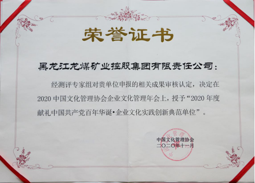 在本次中國企業文化管理年會上,雞西礦業公司榮獲新時代黨建+企業文化優秀單位;雙鴨山礦業公司榮獲新時代企業文化優秀單位;七臺河礦業公司榮獲獻禮中國共產黨百年華誕·企業精神文明建設創新典范單位。