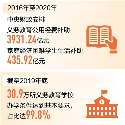 目前,全國1.54億城鄉義務教育階段學生都享受著一份“大禮包”:免除學雜費、免費提供教科書,家庭經濟困難學生還能補助生活費。2016年至2020年,中央財政共安排義務教育公用經費補助3931.24億元,家庭經濟困難學生生活補助435.92億元,免費教科書補助712.13億元。