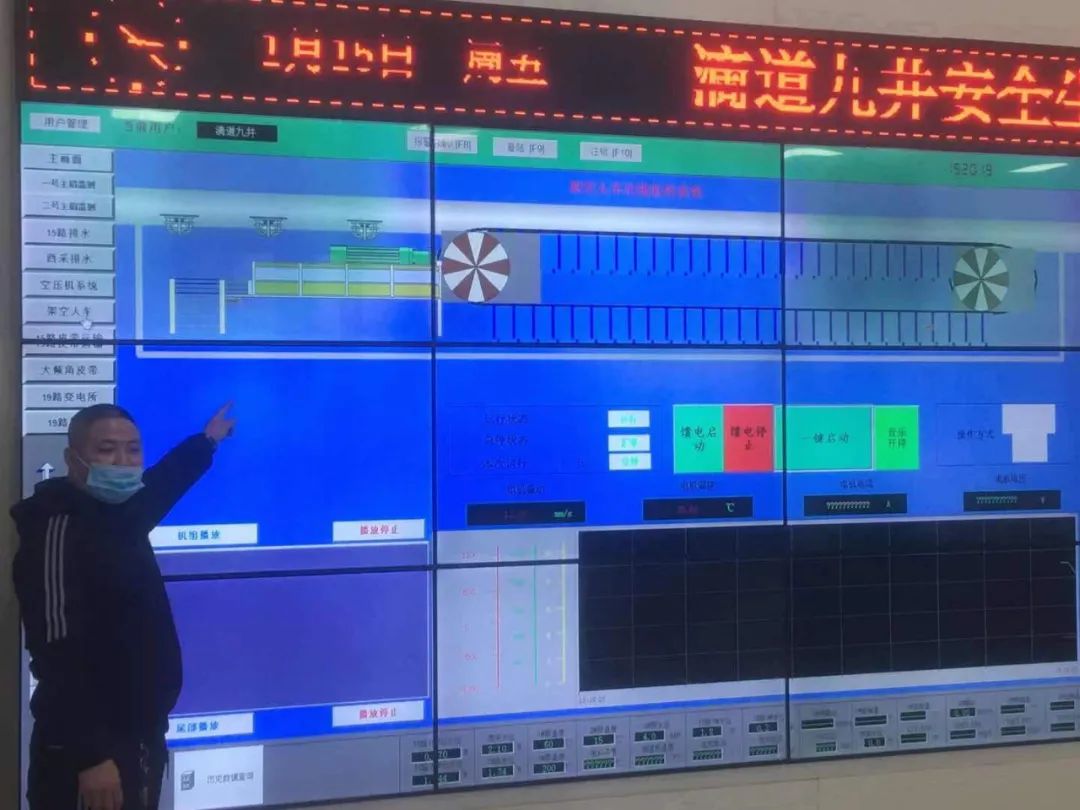 在東山礦安全生產指揮中心,高清大屏幕上分別顯示著井下壓風機、主扇、主排水、乳化液泵站、主運皮帶等多個重要設備的運轉視頻、運轉參數。屏幕上顯示的所有設備,都能通過電腦來對數據進行處理,經過運算就能得知設備目前的狀況,并以參數的給定,來實現設備保護等專業操作。