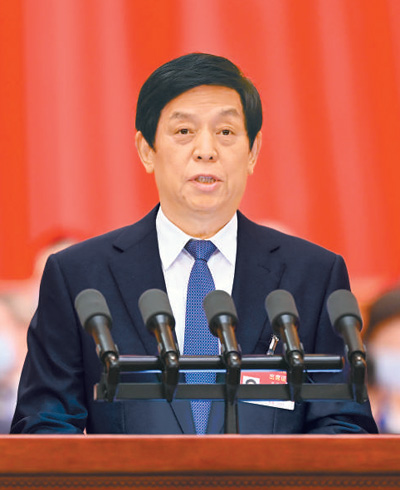 受全國人大常委會委托,栗戰書委員長向大會報告全國人大常委會工作。栗戰書在報告中指出,在以習近平同志為核心的黨中央堅強領導下,全國人大常委會堅持以習近平新時代中國特色社會主義思想為指導,深入貫徹習近平法治思想,履職盡責、積極作為,為推動重大工作部署、應對重大風險挑戰、維護國家安全提供法律保障,有效發揮了國家權力機關的職能作用。
