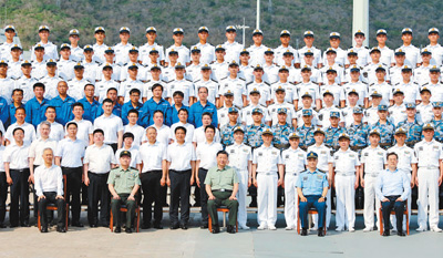 中央和國家機關有關部門、軍委機關有關部門、海軍、海南省以及艦艇科研生產單位的負責同志參加交接入列儀式。