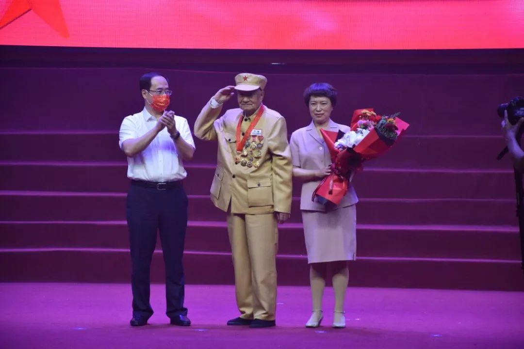 當“在黨五十年”榮譽獲得者,劉吉慶老人代表獲獎者走上舞臺接受大會表彰時,一身戎裝、滿身勛章的老人挺拔地站在臺上向所有參會人員敬了一個標準的軍禮,與會人員掌聲經久不息。