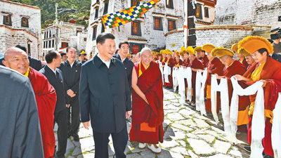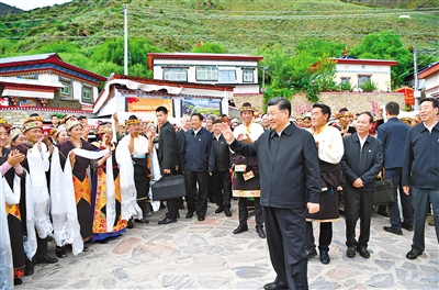 7月21日至23日,習近平在西藏自治區黨委書記吳英杰、自治區政府主席齊扎拉陪同下,先后來到林芝、拉薩等地,深入農村、城市公園、鐵路樞紐、宗教場所、文化街區等看望慰問各族干部群眾。