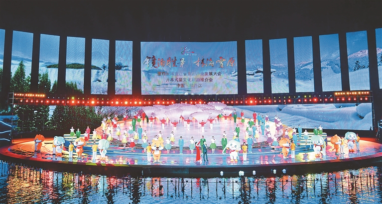 與會嘉賓還現(xiàn)場觀看了“鏡泊勝景·林海雪原”主題文藝演出。