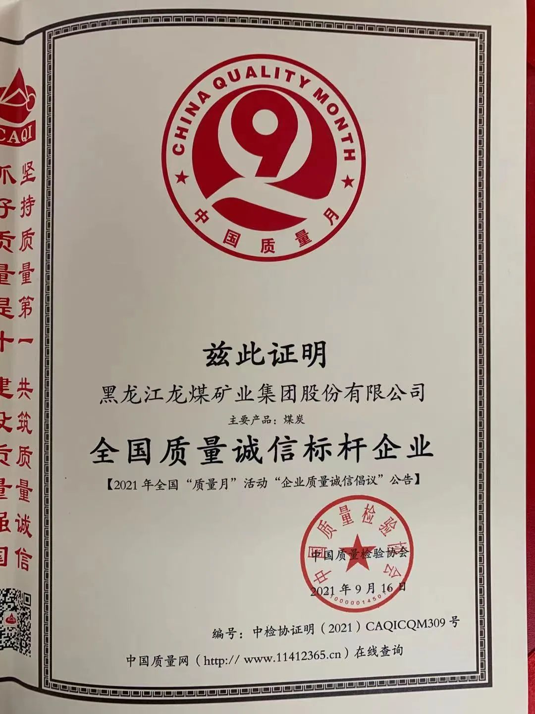 集團公司在中國質量檢驗協會舉辦的《2021年全國“質量月”企業質量誠信倡議》專題活動中,獲得了“全國質量誠信標桿企業”稱號。
