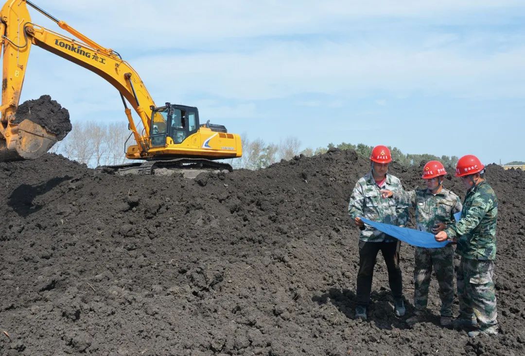 復(fù)墾工程項目部的5名大學(xué)生,有著10年以上的現(xiàn)場施工經(jīng)驗,其中2人是高級工程師,在經(jīng)理的帶領(lǐng)下,頂著烈日安裝變壓器、水泵、排水管,鋪墊臨時道路、放線測量、割草,疏通排水溝淤泥、檢測水質(zhì)。光排水就用了20多天,就近引到500米以外的七星河。