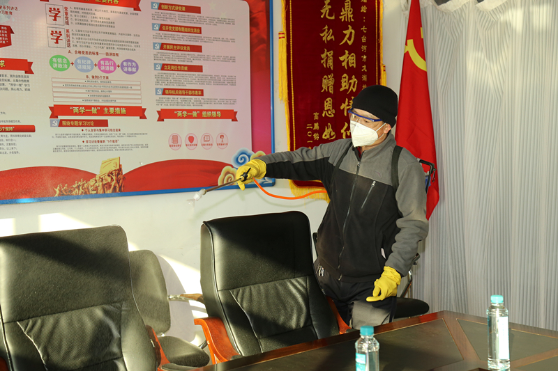 在疫情肆意蔓延的關鍵節點,王勇作為廠疫情防控的第一梯隊成員,主要負責通勤大客車,上下班人員的體溫測量、防疫物資發放、以及廠區、辦公室、食堂、浴池等各處消毒工作。他帶領生產部工作人員每天跟隨通勤客車上班,對所有職工在車下進行體溫測量并詳實記錄個人信息,并為每名職工發放一個口罩,保證職工乘車安全。每天到了單位后,他下了通勤車馬上來到防疫工作重點單位“浴池”,他安排浴池專人負責,每次洗浴只能進入20人,全廠10個基層單位按計劃錯峰更換工作服、洗浴,避免人員接觸。接著他又投入緊張 、細致的廠區消毒工作中,他為大家講解新冠狀肺炎病毒的危害,防疫措施以及消毒工作中,84消毒液的配比,個人防護的知識,保證消毒不留死角。為了更好的進行疫情防控,他白天將廠里的消毒防疫工作落實到細節,晚上整理匯總各項信息,做好向上級主管部門匯報的準備工作。并對第二天的工作進行計劃部署,保證每一位職工的安全。