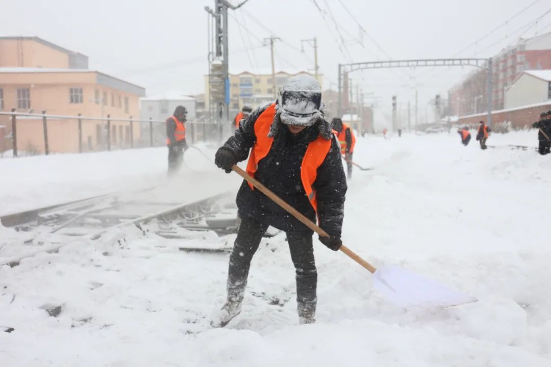 圖為礦區運輸線工人頂著酷寒清冰雪,確保煤炭保供運輸線安全暢通。