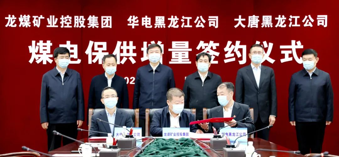 圖為集團公司與大唐黑龍江發電有限公司、華電集團黑龍江公司在10月12日上午舉行煤電保供增量簽約儀式。