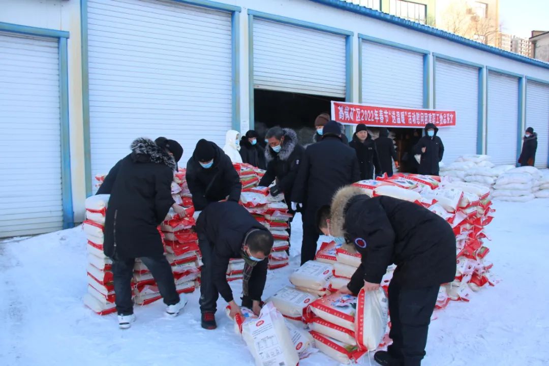 “今天,我們為困難職工發放了米、面、油、香腸和面包等年貨,共慰問困難職工950戶,對不同困難的職工還有相應的救濟款,在春節前把企業的關懷及時地送到困難職工的心坎上,讓他們過一個歡樂祥和的新春佳節。” 礦區工會生活女工部部長房冬秋介紹說。