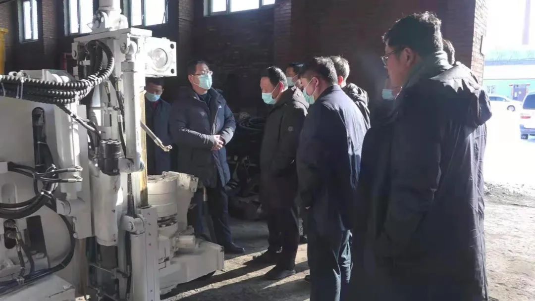 隨后,于會軍又深入到雙鴨山礦區救護大隊鉆機裝備及工藝研發配套基地檢查工作,查看了煤礦用深孔鉆車、履帶式全液壓坑道鉆機運行等情況。