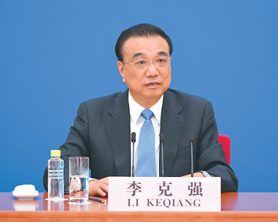 3月11日上午,十三屆全國(guó)人大五次會(huì)議在北京人民大會(huì)堂舉行記者會(huì),國(guó)務(wù)院總理李克強(qiáng)應(yīng)大會(huì)發(fā)言人張業(yè)遂的邀請(qǐng)出席記者會(huì),并回答中外記者提問(wèn)。新華社記者 殷博古攝