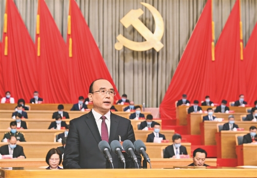 4月29日,許勤在中國共產黨黑龍江省第十三次代表大會上作題為《奮進新征程 再創新輝煌 為實現黑龍江全面振興全方位振興而奮斗》的報告。 黑龍江日報全媒體記者 郭俊峰 邵國良攝