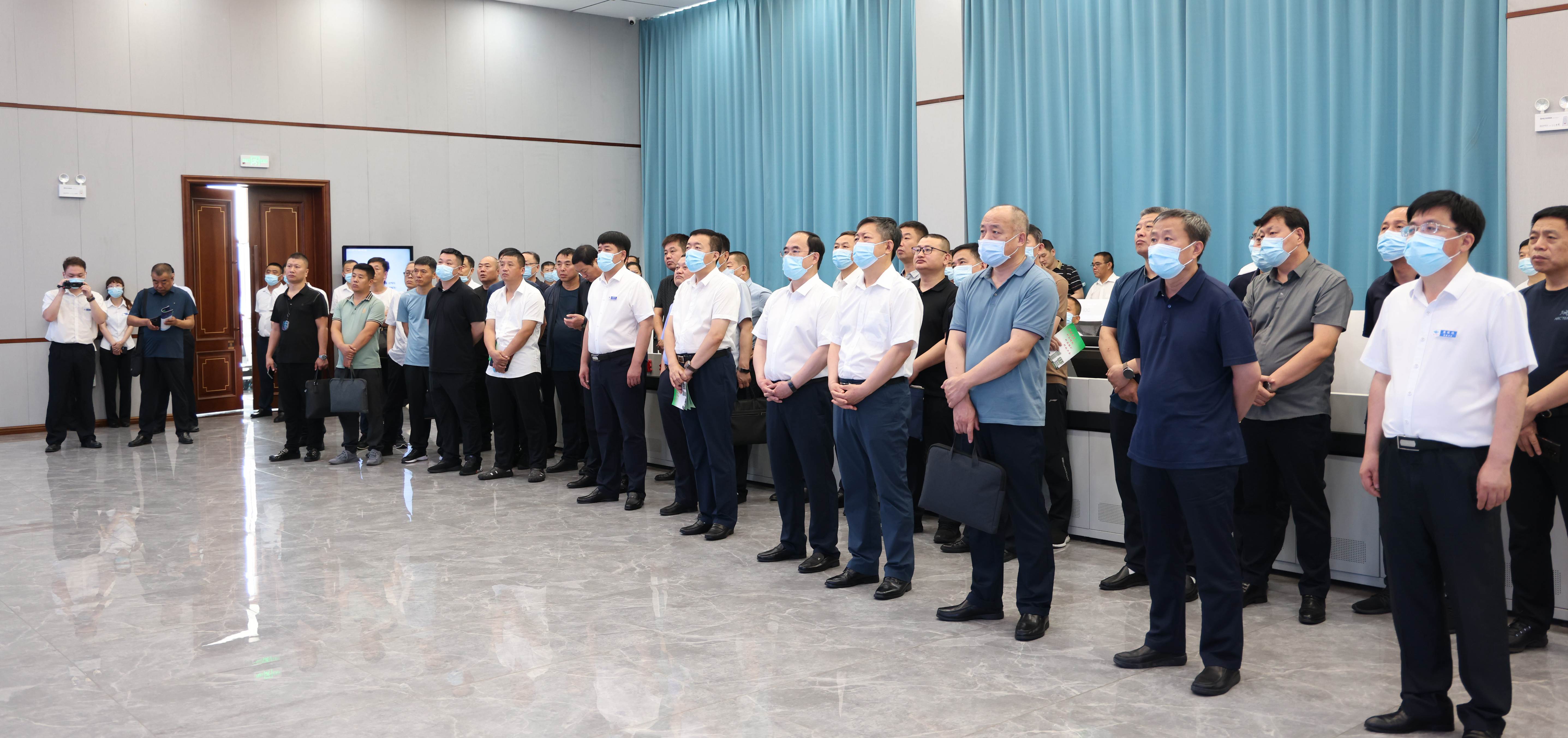 會前,與會人員分組現場參觀了東山礦、城山礦的智能綜采工作面、智能綜掘工作面、井下集中控制和無人值守點、巡檢機器人和地面安全生產指揮中心智能化綜合管控平臺。