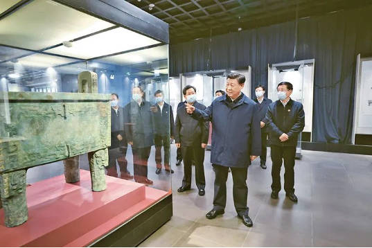 2022年10月26日至28日,中共中央總書記、國家主席、中央軍委主席習近平在陜西省延安市、河南省安陽市考察。這是28日下午,習近平在安陽市殷墟博物館考察。 新華社記者 鞠鵬/攝