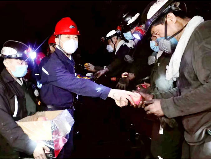 在鳥山礦掘進工作面、綜采工作面,劉鵬飛代表集團公司黨委、集團公司向新年堅守生產一線的干部職工表達了親切慰問,并叮囑他們嚴格兌規作業,加強自主保安和現場管理,確保安全生產。