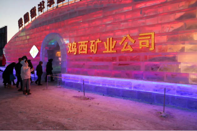 這組大型冰雕以獨具匠心的設計,吸引了眾多市民的目光,它以“奮斗是前進之力、創(chuàng)新是發(fā)展之源”為設計主旨,融礦山文化底蘊與現(xiàn)代冰雕藝術于一體,以礦工頭像和井下設施以及矸石山等為輪廓,充分展示雞西百余年開采史和七十余年建企史中所走過的奮斗發(fā)展歷程、厚重的企業(yè)文化、嶄新的精神風貌,寓意著公司基業(yè)永固、前程似錦,人企平安、吉祥如意,彰顯了雞礦公司蒸蒸日上的發(fā)展前景和員工昂揚向上的精神風貌。