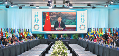 1月24日,拉美和加勒比國家共同體第七屆峰會在阿根廷首都布宜諾斯艾利斯舉行。應拉共體輪值主席國阿根廷總統費爾南德斯邀請,國家主席習近平向峰會作視頻致辭。
