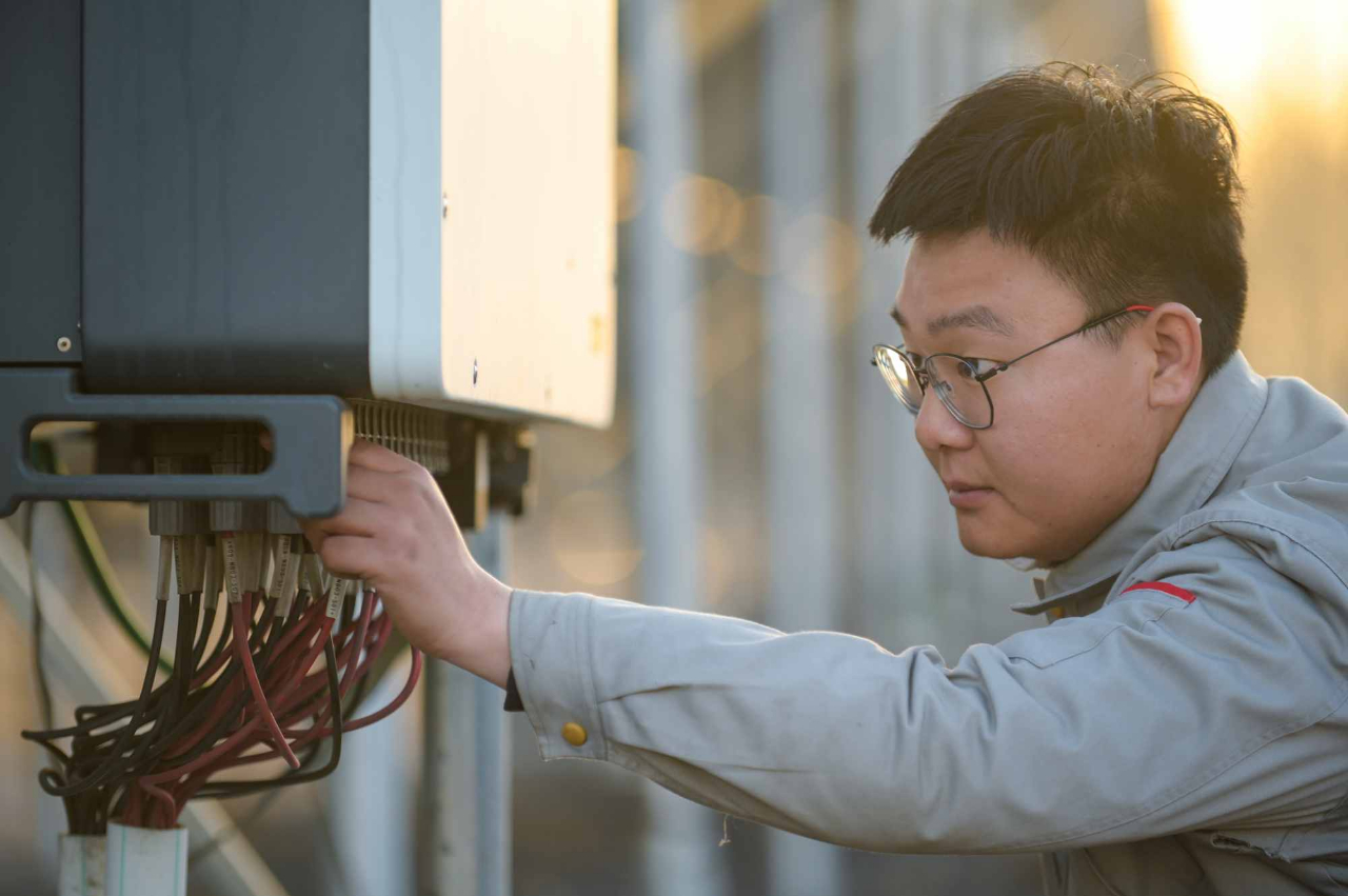 在占地面積30萬平方米的光伏發(fā)電場,幾乎看不到工作人員。王成龍說,這得益于我們的智能化建設(shè),可以通過光伏發(fā)電智能運(yùn)維平臺對光伏發(fā)電站發(fā)電功率、累計發(fā)電量、發(fā)電量曲線、輻照度曲線進(jìn)行實時監(jiān)控,通過設(shè)備分析可以了解光伏設(shè)備的運(yùn)行狀態(tài),還可以實現(xiàn)氣象資源分析和電站性能分析、智能巡檢、故障智能分析等功能,實現(xiàn)了光伏發(fā)電場區(qū)無人值守。檢修人員用手機(jī)藍(lán)牙連接逆變器后,可對發(fā)電量、電壓、電流、功率進(jìn)行全面了解,發(fā)生故障時,能夠迅速了解原因,做到了運(yùn)維精細(xì)化。