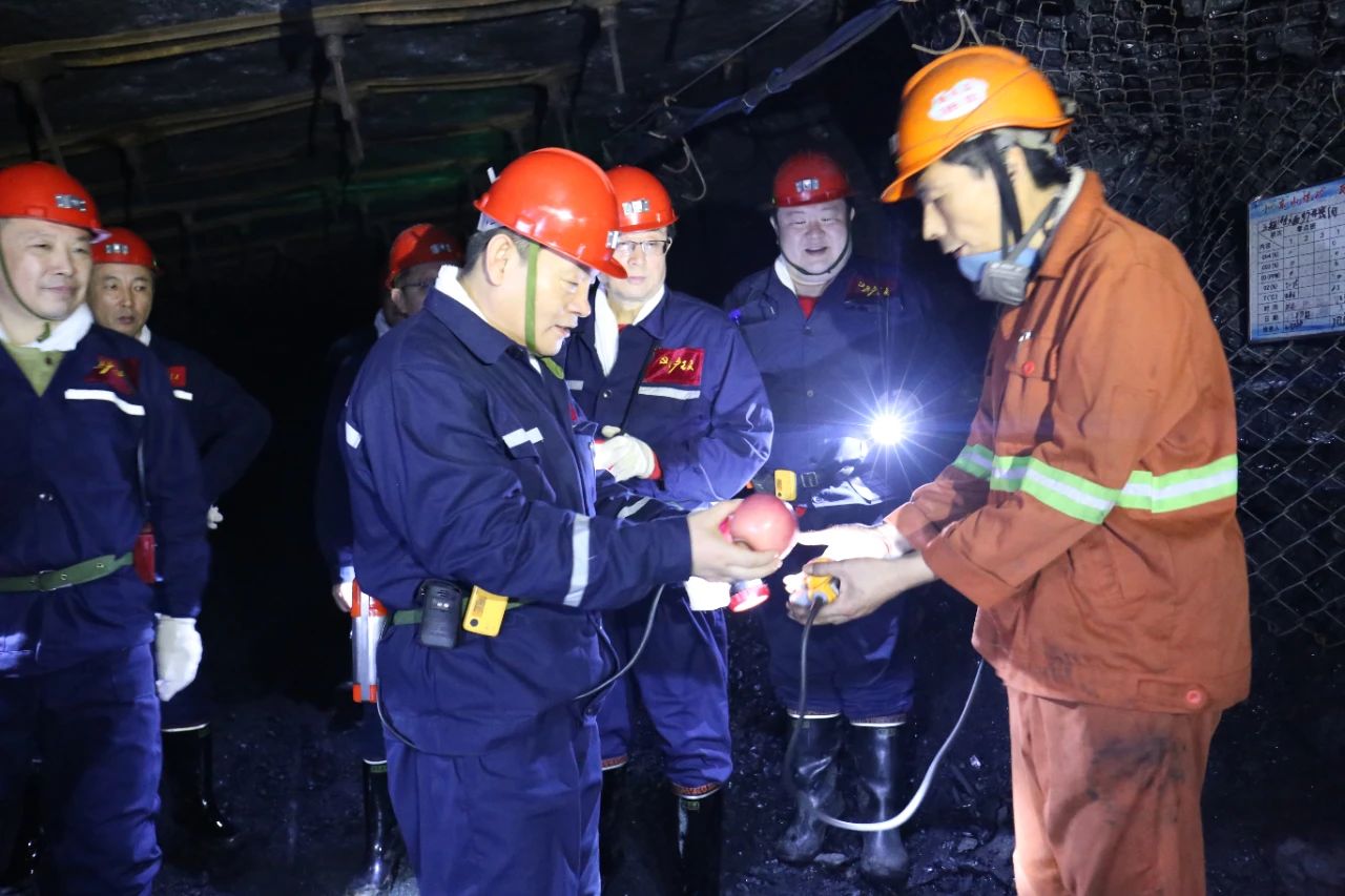 王佳喜檢查了東山礦161綜采隊的安全生產和現場管理工作,并為當班人員送上象征平安吉祥的“平安果”,叮囑他們要增強安全意識,嚴格兌規作業,確保安全,圓滿完成當班工作任務。