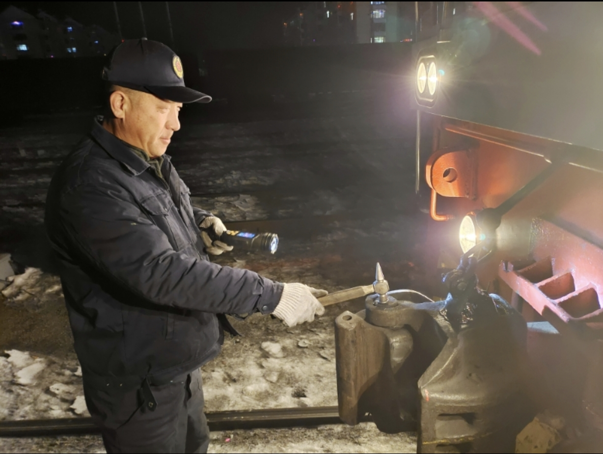 2月11日晚上6點40分,東北冬天的夜幕早已垂下。家家戶戶紅燈高懸,鞭炮聲此起彼伏。在龍煤雙鴨山礦業(yè)公司鐵路運輸部機務(wù)段,0034號機車司機長于治國和副司機孫賀開完班前會后,急忙穿上工作服,拿好檢車工具,迅速朝機車走去,在寒風中開啟了他們緊張忙碌的夜班作業(yè)。