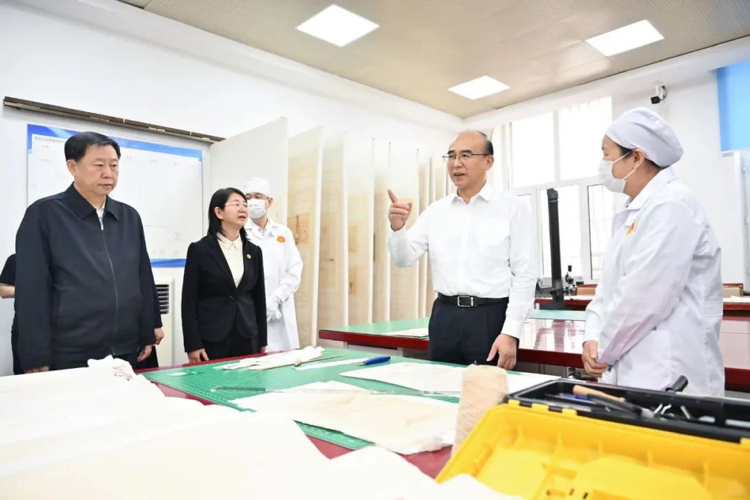 在省檔案館裱糊室,許勤了解檔案收集整理、保管保護(hù)工作