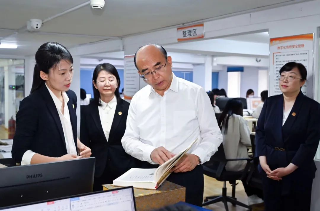 在省檔案館,許勤了解檔案數(shù)字化工作的進(jìn)展情況